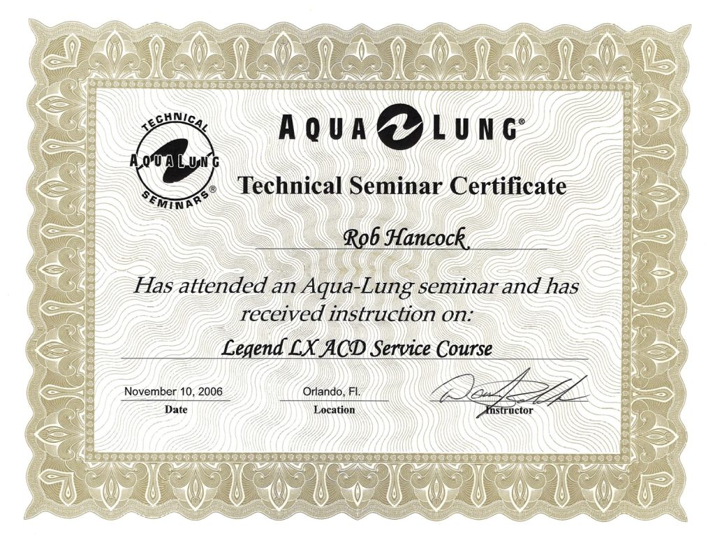 Scuba Gear Service LLC (SGS) is owned and operated by Rob Hancock, an SSI Instructor Certifier and NAUI technical diving instructor with over thirty years of experience providing scuba gear service to recreational and technical divers.