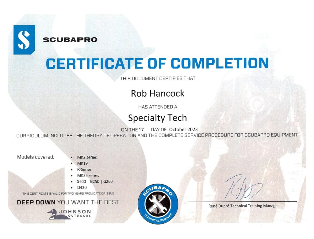 Rob has spent his career working on life-support gear for recreational and technical divers. He understands that when you send in your equipment, you’re not just asking for “a tune-up”—you’re trusting someone with the gear that keeps you alive underwater.
